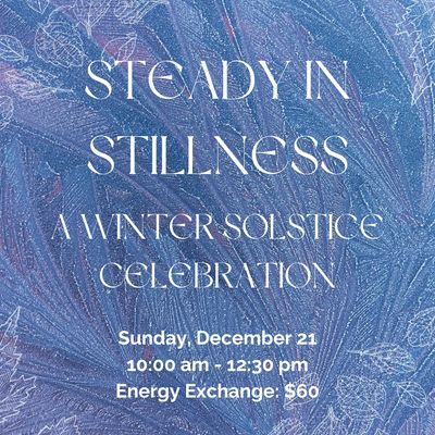 As winter settles in and the world grows quiet, you're invited into a serene haven to honor the Winter Solstice. Guided by our December theme Steady in Stillness, this gathering offers a gentle journey inward, inviting rest, reflection, and deep nourishment for your inner light.